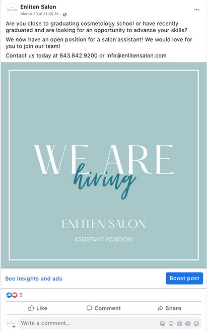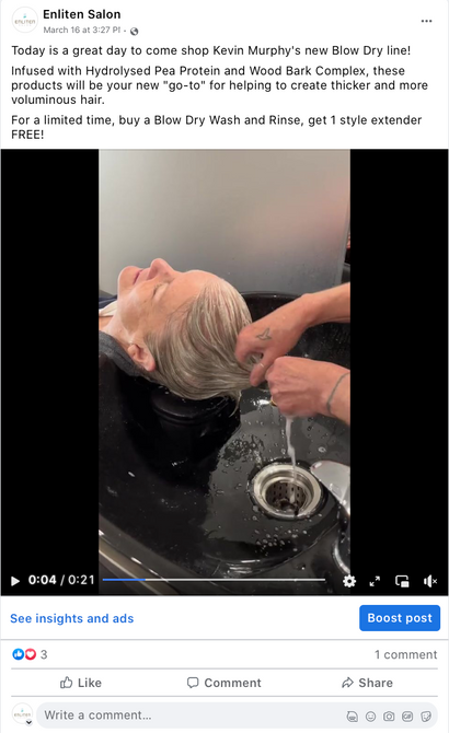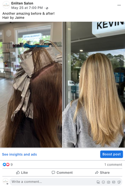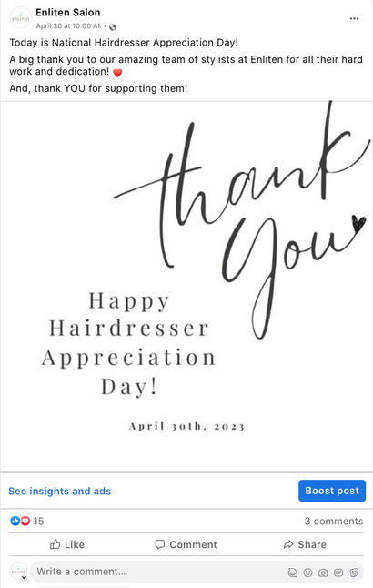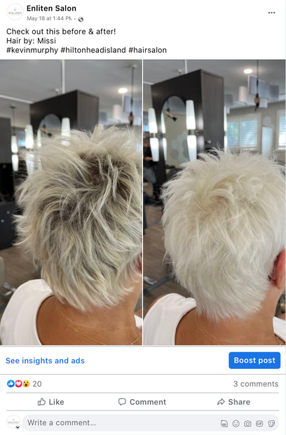 I posted on Facebook to showcase the stylists' work, as well as promote products to increase sales.